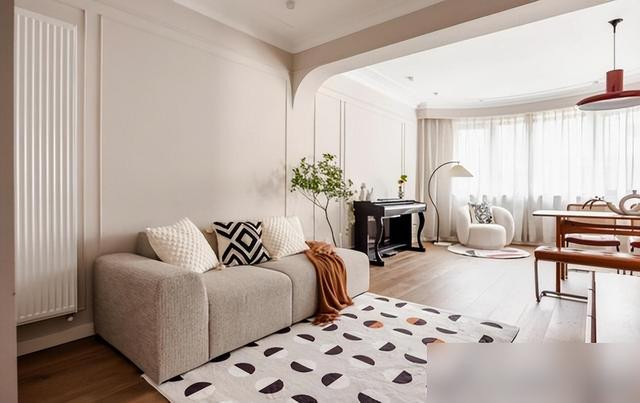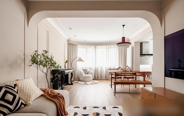 拱形门洞取代笨重的梁柱,柔和的弧线让空间流动起来。