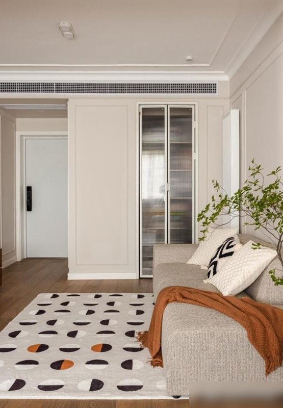 配上几何地毯和绿植,有种不刻意的精致感。