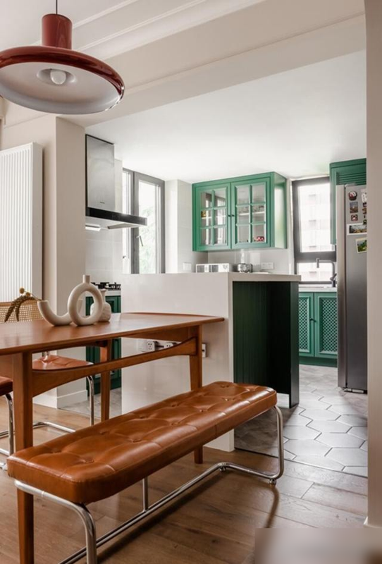 最聪明的是拆了厨房隔墙,餐厅瞬间亮堂起来,岛台还能当切菜区。